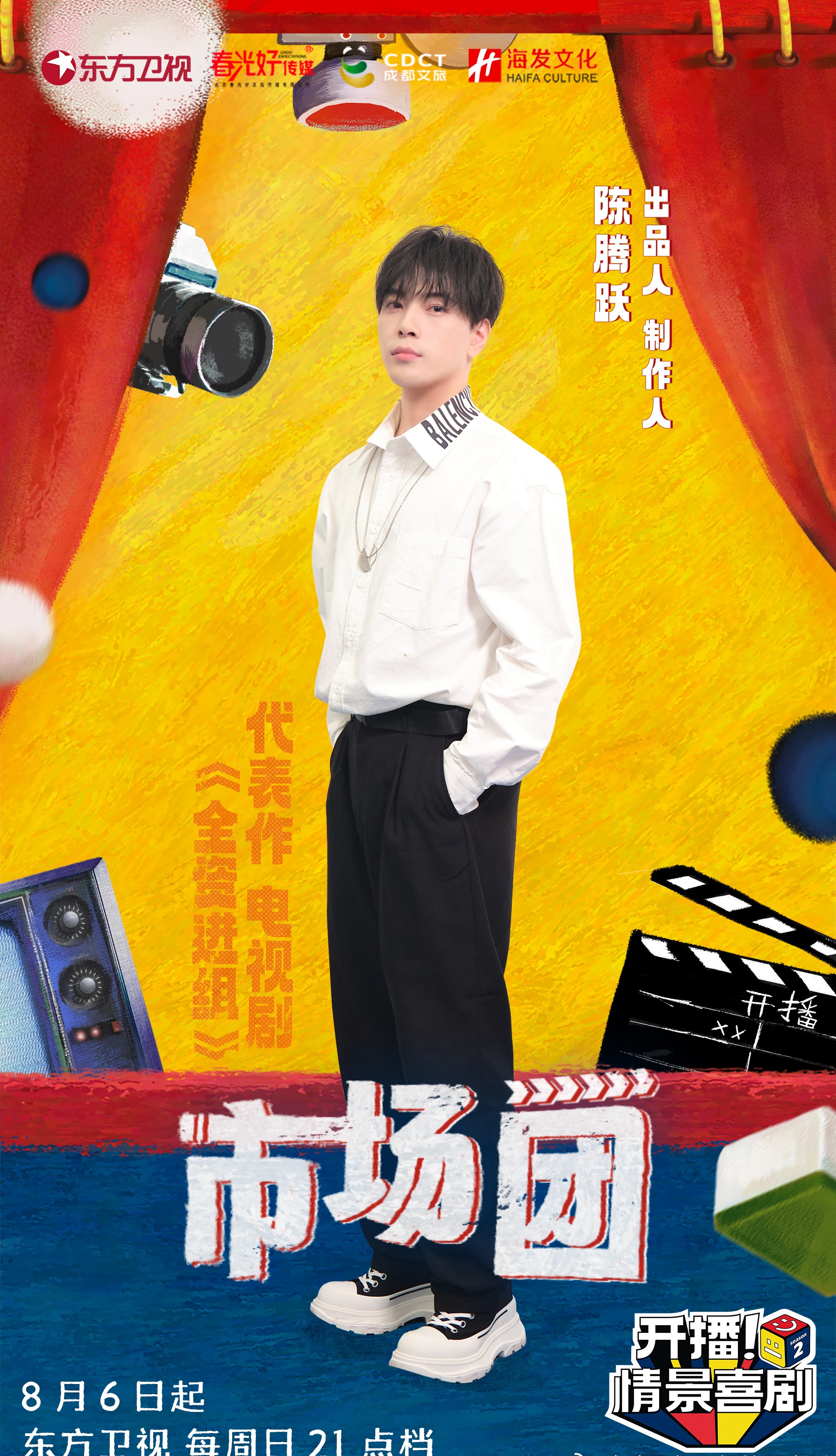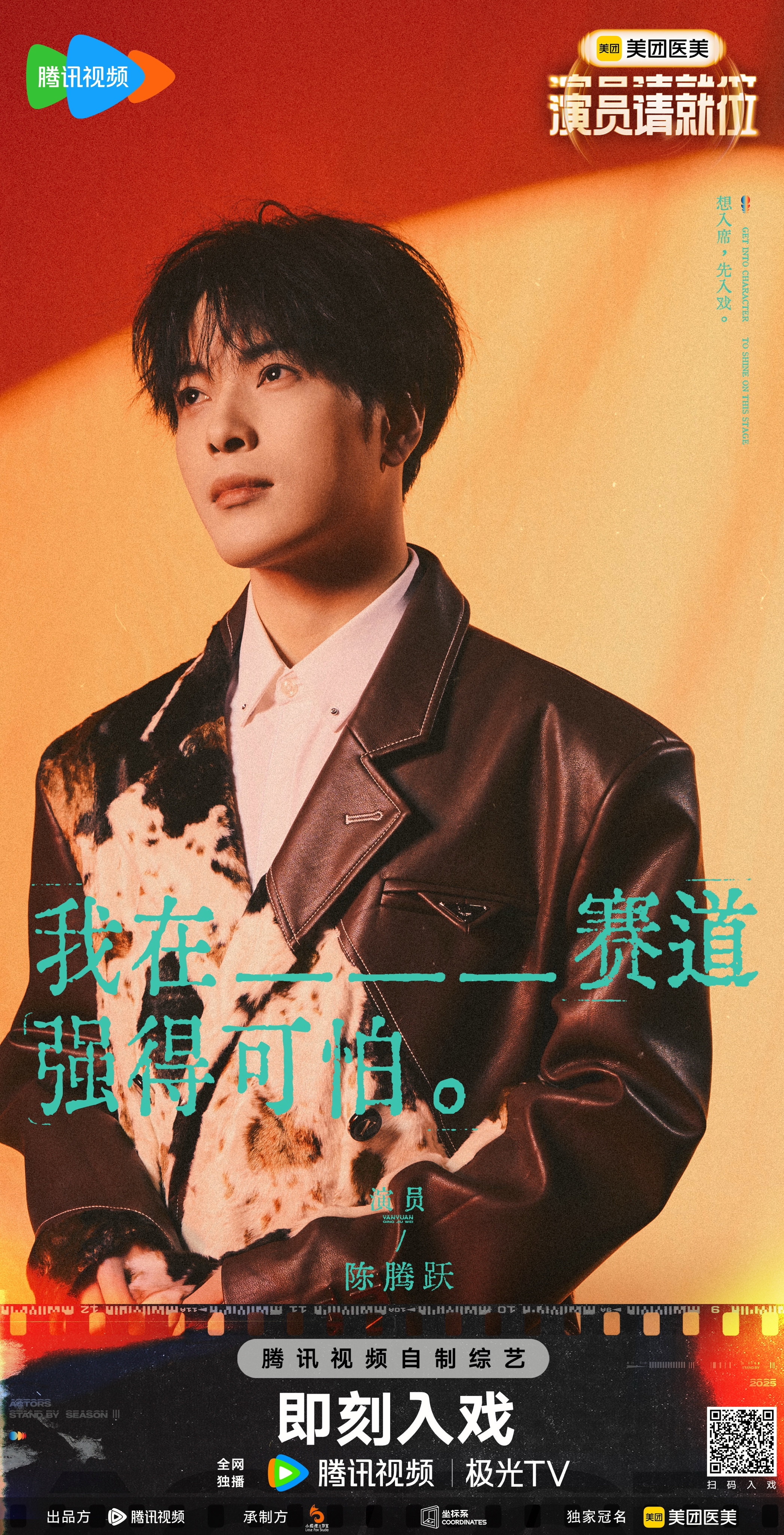 陳騰躍,1995年出生于安徽阜陽,中國內(nèi)地影視男演員。2017年,在李雙武執(zhí)導(dǎo)的都市情感系列網(wǎng)劇《有毒》飾演男主程越,并演唱片尾曲《心劫》。2018年,出演電視劇《秋官課院之狄仁杰浮世傳奇》。2020年,出演網(wǎng)劇《醫(yī)妃難囚第二季》、《醫(yī)妃難囚第三季》、《兄臺請留步》及電視劇《小女霓裳》;同年出演的電視劇《傳聞中的陳芊芊》播出。2022年2月14日,參演的網(wǎng)劇《惹不起的千歲大人》播出。2022年出演古裝奇幻甜寵網(wǎng)劇《彩云易散琉璃脆》;11月,古裝劇《全資進(jìn)組》殺青,擔(dān)任出品人、制片人。2023年4月28日,主演的電視劇《全資進(jìn)組》播出。同年,參加《開播!情景喜劇第二季》擔(dān)任評審嘉賓。2024年7月15日,主演的網(wǎng)絡(luò)劇《全資進(jìn)組第二季》播出。2024年10月,官宣簽約歡娛影視。